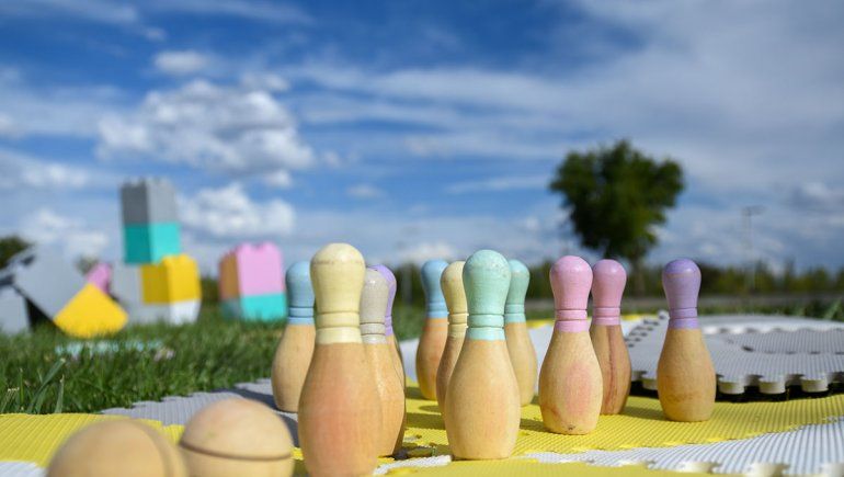 Patapatas, patacletas, jenga gigante, dominós y bloques gigantes, tablas de equilibrio, cubos Pikler, balancines, hamacas, toboganes, mini bowlings. Una plaza se puede armar de muchas cosas o temáticas, pero deben tener un solo objetivo: la diversión segura.