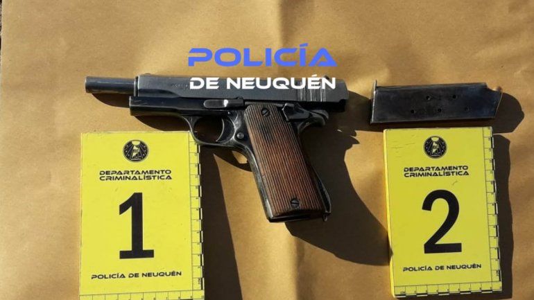 En medio del operativo de secuestro del vehículo, en su interior, personal policial halló una pistola calibre 1125, que se encontraba debajo de uno de los asientos.