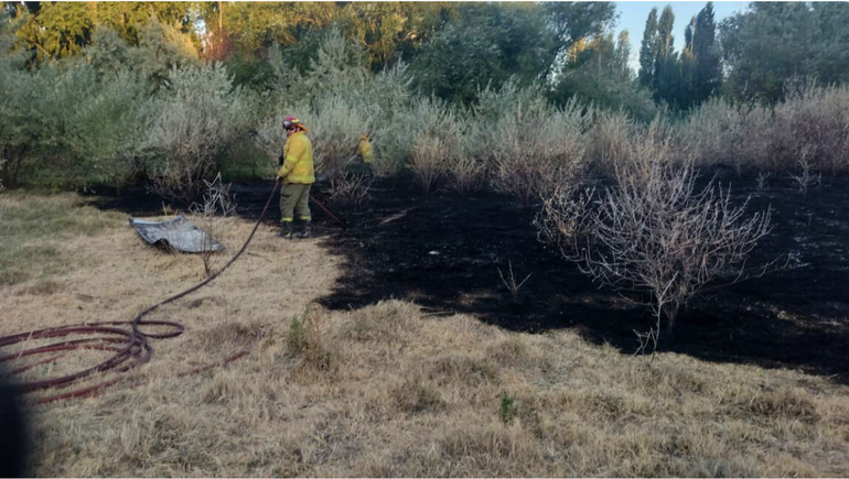 Las quemas intencionales fueron en Isla El Porvenir, calle 7 al fondo, en cercanías al río Neuquén. Bomberos Voluntarios evitaron incendio de viviendas.
