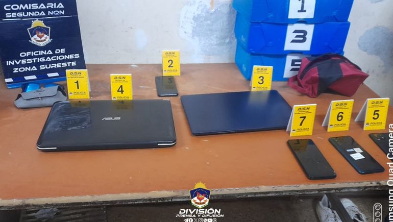 De inmediato, los efectivos lo demoraron, le secuestraron un bolso que llevaba en su poder con varios celulares y notebooks, y una navaja que tenía en su bolsillo, y dieron intervención a la fiscalía, que ordenó su detención y el viernes en horas del mediodía lo llevó a una audiencia de formulación de cargos.