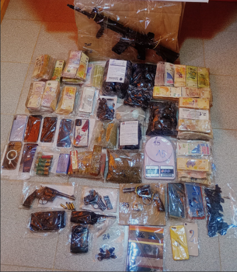 En la casa allanada también se encontró un arma de fuego marca Ballester Molina calibre 11.25 con municiones, y 627 mil pesos en billetes de diferente denominación.