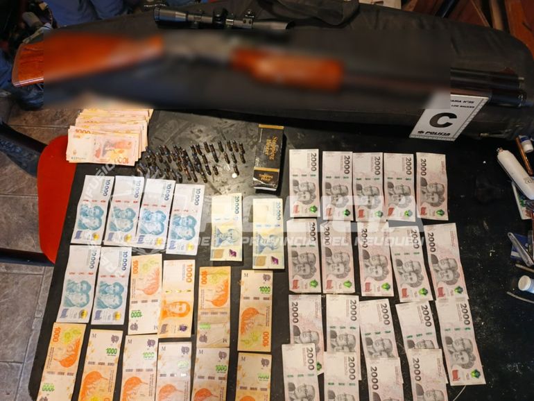 Uno de los despliegues más importantes se concretó en una propiedad ubicada sobre calle Buenos Aires. Allí se secuestraron seis teléfonos celulares Samsung y un total de 53 cartuchos calibre .32, además de otros elementos de interés para la causa.