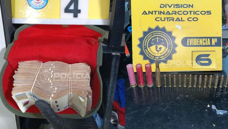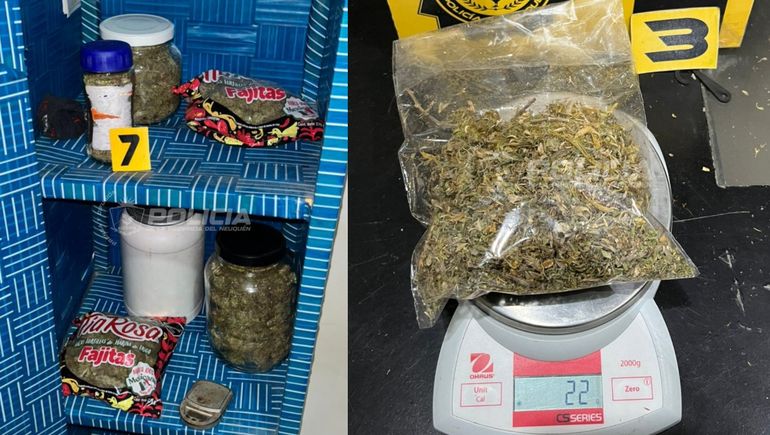 Durante el allanamiento, se secuestraron 590 gramos de marihuana en cogollos, además de semillas, siete plantines, varios frascos de fertilizantes, luces ultravioletas, dos balanzas de precisión, celulares, municiones de distintos calibres y $40.300 en efectivo, en billetes de baja denominación.