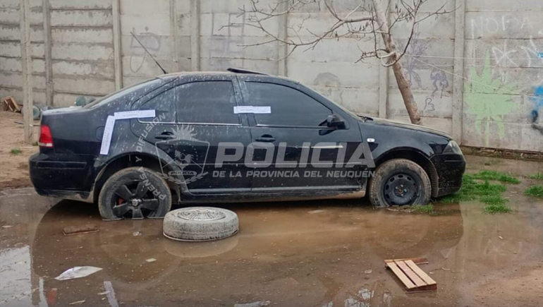El hallazgo se produjo en una vivienda ubicada en calle Alfonsina Storni, en un sector barrial de la ciudad de Centenario. El auto se encontraba en iguales condiciones, pero escondido al fondo de un patio inundado. Es decir que, tras el violento robo a mano armada, los delincuentes huyeron hasta la vecina localidad, pero dos pasos en falso delataron su ubicación.