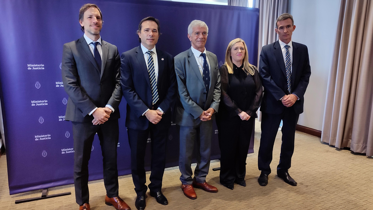 El fiscal general José Gerez, la presidenta del Tribunal Superior de Justicia (TSJ), Soledad Gennari, y el vocal Alfredo Elosu Larumbe firmaron un convenio con el ministro de Justicia de la Nación, Mariano Cúneo Libarona, para implementar un Plan Estratégico de Persecución Penal .