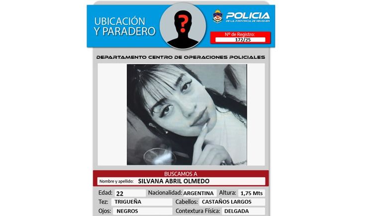 Ante la denuncia de un familiar, se lanzó una búsqueda para dar con la ubicación y paradero de Silvana Abril Olmedo, esta veinteañera de la que no se sabe nada acerca de su paradero. La vieron por última vez en las calles Pérez Novella y Huilén en el noroeste de la ciudad.