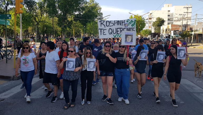 La medida judicial se realizaba mientras, en paralelo, vecinos de la localidad se reunían en la plaza principal para marchar reclamando la aparición de Rosana.