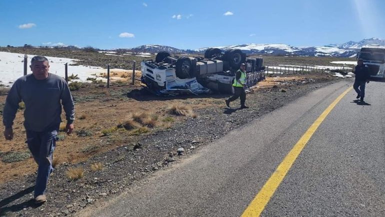 El camión pertenecía a una empresa chilena y transportaba láminas de madera prensada, perdió el control del vehículo y terminó volcado con las ruedas hacia arriba sobre la banquina.