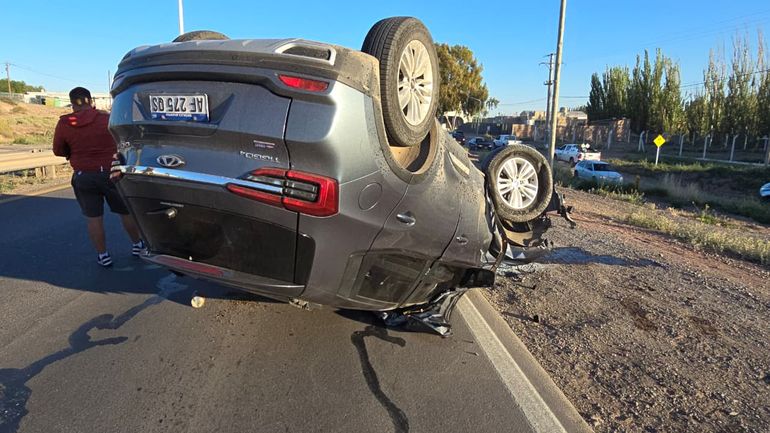 Este martes por la mañana se registró un impactante choque y vuelco en la Ruta 7 a la altura del cruce de la estación de servicio Puma de Centenario. El siniestro vial involucró a tres autos, uno de los cuales, marca Chery, quedó dado vuelta en la mano Neuquén Centenario.