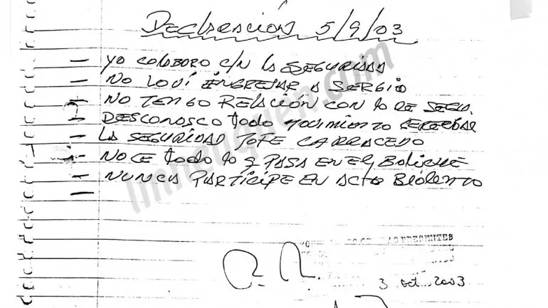 Todos debían responder lo mismo y para eso habían hecho una suerte de machete con las respuestas que debían dar ante las autoridades al comienzo de la investigación en junio de 2003.