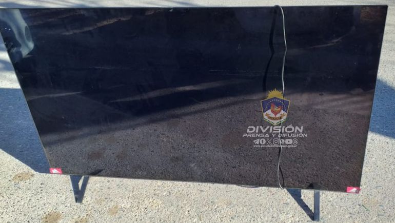 Sorpresivamente, también se secuestró en una de las viviendas un televisor Smart con pedido de secuestro por robo en la capital neuquina, lo que hace pensar que también podrían haber delinquido en su ciudad de origen.