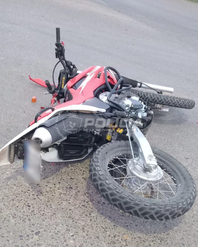 En la calzada la moto quedó tirada y perdió algunos trozos plásticos. En tanto, un familiar del conductor acudió al lugar y la División Tránsito hizo entrega del rodado.