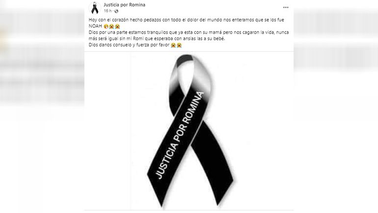 “Hoy con el corazón hecho pedazos con todo el dolor del mundo nos enteramos que se nos fue NOAH”, arrancó diciendo el escrito y luego agregó: “Dios, por una parte, estamos tranquilos que ya está con su mamá, pero nos cagaron la vida. Nunca más será igual sin mi Romi, que esperaba con ansias a su bebé. Dios danos consuelo y fuerza por favor”.