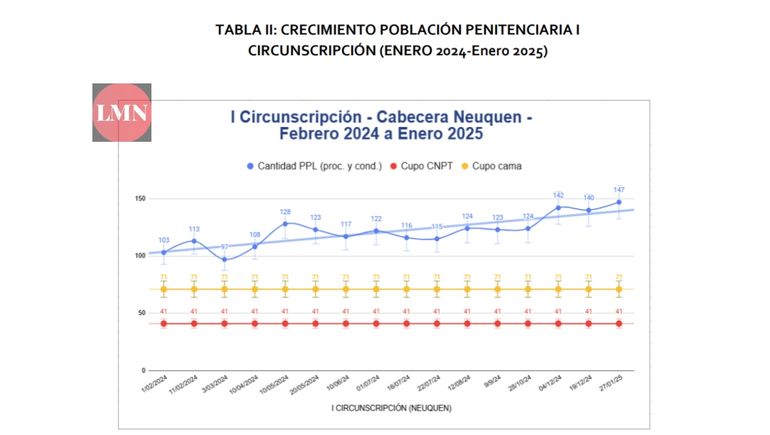 Incluso, esto último se ve reflejado en el siguiente cuadro al que accedió exclusivamente LMN, realizado por el Grupo de Control del Encierro Preventivo de la defensa, en el que se observa que el cupo fijado por la Policía y el calculado en base a las recomendaciones no se modificó (porque no se produjeron plazas), pero aún así el número de alojados se mantuvo en aumento.