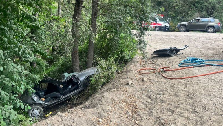 Bomberos de San Martín de los Andes fueron convocados a la escena para retirar el vehículo y para ayudar con la extracción de uno de los pasajeros, quien había quedado atrapado entre los hierros doblados del auto.