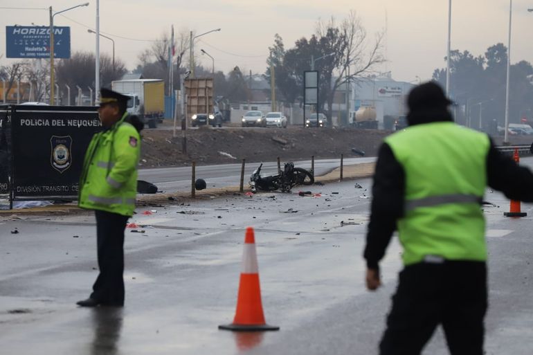 La violencia del choque fatal fue tremenda: el cuerpo quedó a unos 20 metros del punto de impacto, a la altura del ingreso al cementerio de Centenario. El casco negro, el asiento y otras piezas de lo que quedó de la moto desparramada a lo largo de la Ruta 7, escenario de la tragedia también en San Patricio del Chañar, donde se registró la muerte de dos trabajadores estatales en un choque.