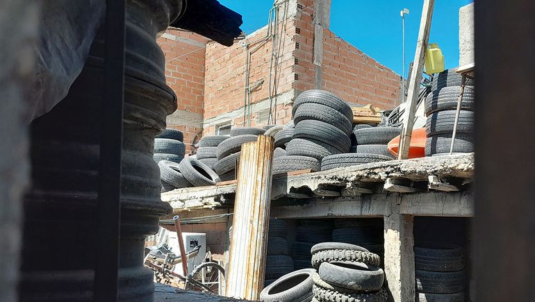 La vivienda de Sánchez, de 59 años, donde según la fiscalía se cometió el transfemicidio de Azul, y luego su defensa lo admitió, está arriba de la gomería “Belgrano”. Detrás de la fachada amarilla y una gran rueda de camión que anuncia “El 22”, en el patio, al fondo, ladran los perros que los Bomberos salvaron de las llamas en Nochebuena, donde se acumulan pilas de neumáticos, herramientas oxidadas y restos de alambres.