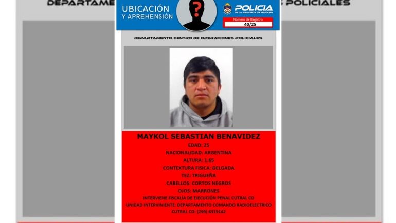 El prófugo tiene 25 años, es de nacionalidad argentina, mide 1,65 metros de altura, es de contextura delgada y posee tez trigueña y cabello y ojos oscuros.