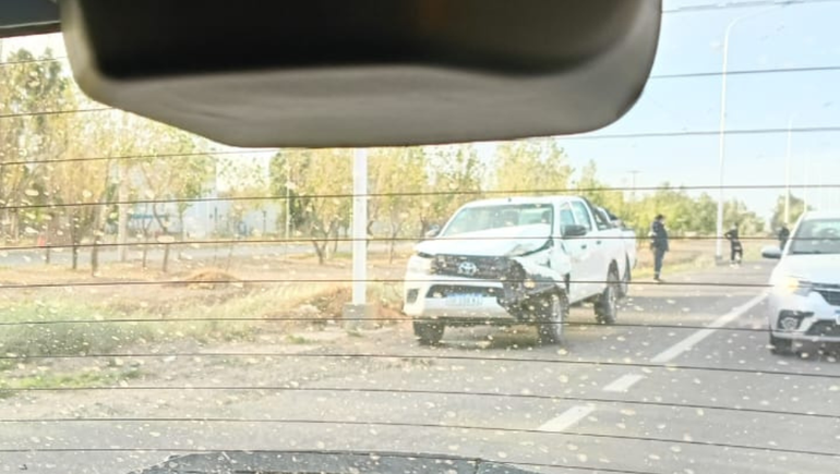 Un fuerte choque ocurrió en Parque Industrial, sobre la avenida Raúl Alfonsín durante la tarde de este miércoles. Una camioneta iba a alta velocidad e impactó desde atrás a dos autos que esperaban a que se ponga en verde el semáforo de la rotonda de las cerámicas en sentido hacia Neuquén.