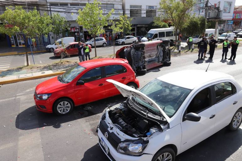 Fuerte choque en cadena y vuelco en plena Avenida Mosconi: un conductor no tenía licencia