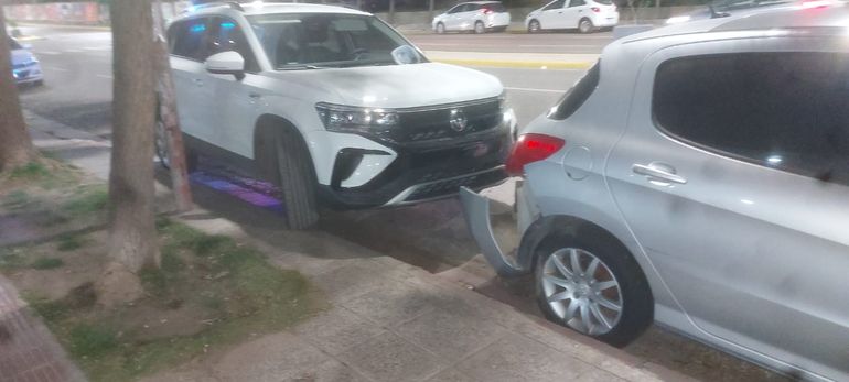 Como consecuencia de esta maniobra, la camioneta terminó chocando contra dos autos que se encontraban correctamente estacionados sobre la calzada. El conductor decidió no detenerse y se dio a la fuga.