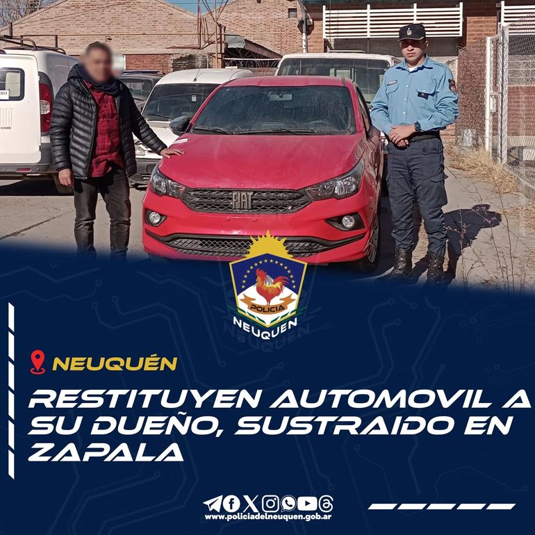 Por otro lado, personal de la Comisaría 16, llevó a cabo el secuestro de un Fiat Cronos luego de una orden de la fiscalía de Robos y Hurtos. El rodado se encontraba en el barrio Gran Neuquén y era buscado en el marco de una causa penal por hurto simple en Zapala.