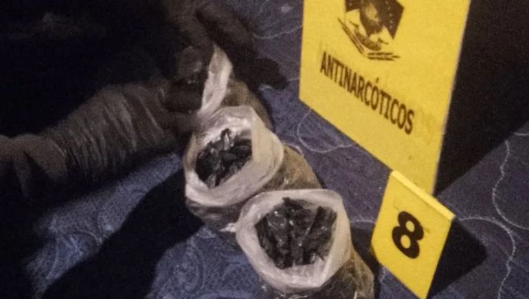 En tanto, en otro domicilio allanado, situado en la intersección de las calles Lago Carilafquen y Huilén, se hallaron varias bolsas que supuestamente contenían drogas, una balanza de precisión, recortes de nylon, anotaciones, dos teléfonos celulares, 120.500 pesos y 2 mil pesos en moneda chilena.
