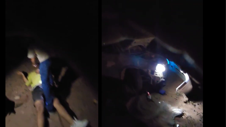 El vehículo estaba volcado sobre el costado izquierdo contra una barda, aparentemente producto de un despiste. Tampoco trascendió quién es la persona o grupo involucrado en el asunto.
