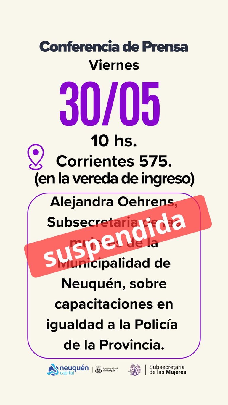 A raíz del intento de robo, la Subsecretaría de Género comunicó a la prensa la suspensión de la conferencia de prensa del anuncio de las capacitaciones a la Policía de Neuquén en el marco del programa "Caminando hacia la igualdad". Consultada sobre la importancia de las jornadas, Oehrens comentó a LMNeuquén que hace cinco años funciona a pedido de las instituciones como grupos de vecinos, sector deporte para garantizar derechos y obligaciones.