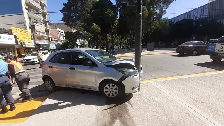 Sin embargo, eso no fue todo, ya que en un intento por esquivarlo para no atropellarlo, la conductora terminó perdiendo el control de su Ka y así chocó de lleno contra un poste de alumbrado público, sobre San Martín/Independencia.