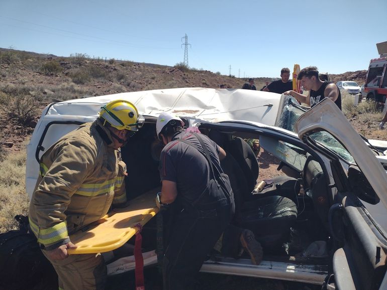 En el lugar trabajaron de manera conjunta Bomberos Municipales, Defensa Civil, personal policial y del Hospital de Villa El Chocón, brindando asistencia a las personas involucradas y asegurando la zona.