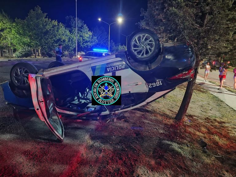 Un violento accidente tuvo lugar este sábado por la madrugada en ruta 22 y calle Zabaleta en la ciudad de Plottier. Alrededor de las 19 horas, Bomberos Voluntarios se hicieron presentes en una colisión entre un auto y un móvil patrullero de la Comisaría 7° que terminó volcado.