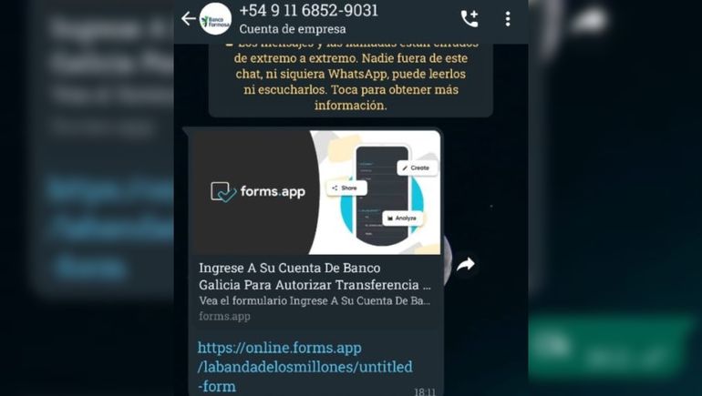 La mujer, lógicamente, se preocupó, tomó contacto con el comprador y terminó hablando con un falso empleado de Atención al Cliente del banco que luego le envió un link por WhatsApp desde un número con característica de Buenos Aires, a través del cual podría supuestamente devolver el dinero.
