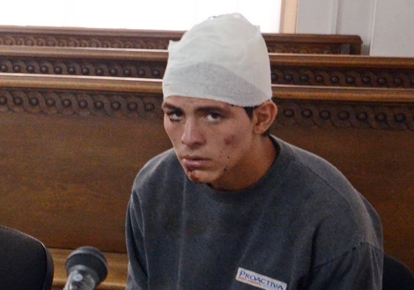 A la audiencia llegó con un vendaje en la cabeza y dijeron que se había caído durante el intento de fuga, aunque también se insinuó que la Policía lo había golpeado.