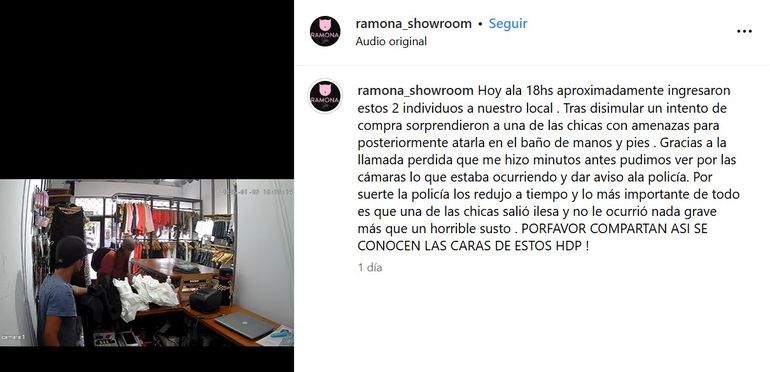 Jazmín Salías, la propietaria del local Ramona Store decidió compartir a través de su cuenta de Instagram el video que registró la cámara de seguridad, que captó toda la secuencia.