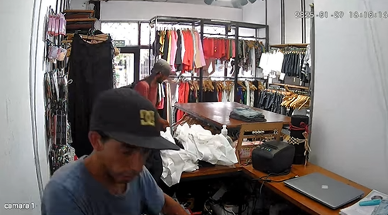 Los dos ladrones pasaron por afuera del local, vieron que no había clientes y entraron. Comenzaron a consultar por distintas prendas y precios, pero la vendedora se dio cuenta de algunas actitudes sospechosas y tuvo una rápida reacción: realizó una llamada perdida a Jazmín, quien rápidamente observó las cámaras de seguridad y avisó a la policía.