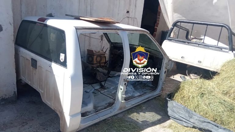 El allanamiento -que contó con la colaboración del Departamento UESPO- tuvo como escena una vivienda de calles Río Colorado y Calle Sin nombre en la localidad vecina, donde se logró incautar una caja de cambios, un motor, un habitáculo, una chapa patente, cuatro compuertas, un vehículo Ford Ka color rojo, una camioneta Ford Ranger, un arma de fuego tipo revólver, municiones y otros elementos de interés.