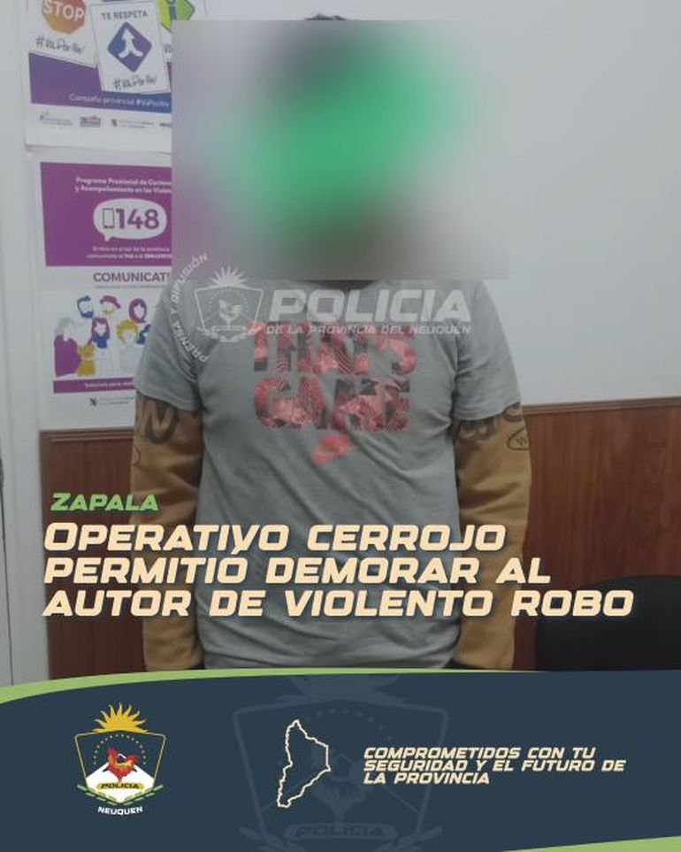 En apariencia, el autor del atraco, oriundo de la ciudad de Centenario, tiene un enorme prontuario por robos calificados y solo hace un mes recuperó la libertad condicional. Asimismo, durante el asalto, no dejó ver su rostro debido a que lo tenía cubierto con un cuellito. Y durante su huida, con el fin de evitar su identificación, se colocó una remera arriba del buzo. Antes de ser atrapado, se había ocupado de ocultar el botín y el arma blanca utilizada en el hecho delictivo. De igual modo, los efectivos lograron ubicar los elementos y llevaron a cabo su secuestro.