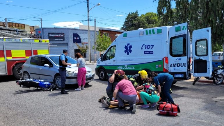 Según consignó el portal Centenario Digital, el hecho ocurrió el jueves por la tarde, cuando un joven en moto y una mujer en un auto Peugeot 307 colisionaron en la intersección de calles Expedicionarios del Desierto y Mariano Moreno.