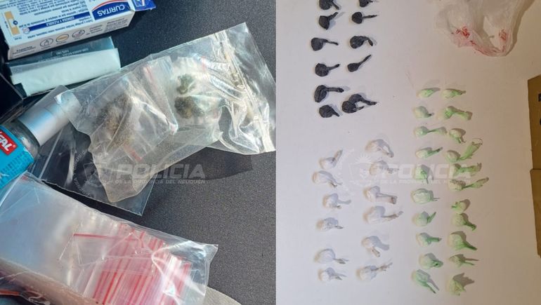 El personal del Departamento Antinarcóticos que colaboró con el procedimiento pudo verificar la naturaleza de las sustancias: se trataba de 23 gramos de cocaína fraccionada y lista para la venta, y casi 5 gramos de marihuana, también repartida en envoltorios para su venta al menudeo. Además, entre todo esto se encontraron pequeñas bolsas con cierre hermético (tipo "Ziploc") sin uso, utilizadas habitualmente para el fraccionamiento.