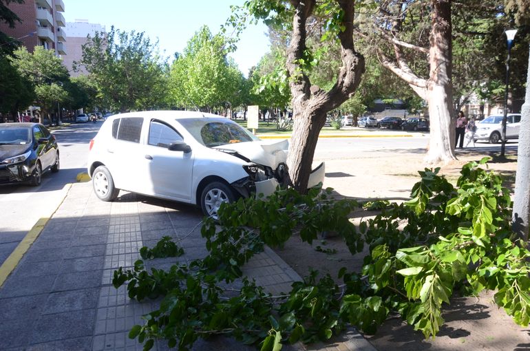 Lo chocaron y terminó con la trompa del auto incrustada en un árbol de la Avenida Argentina