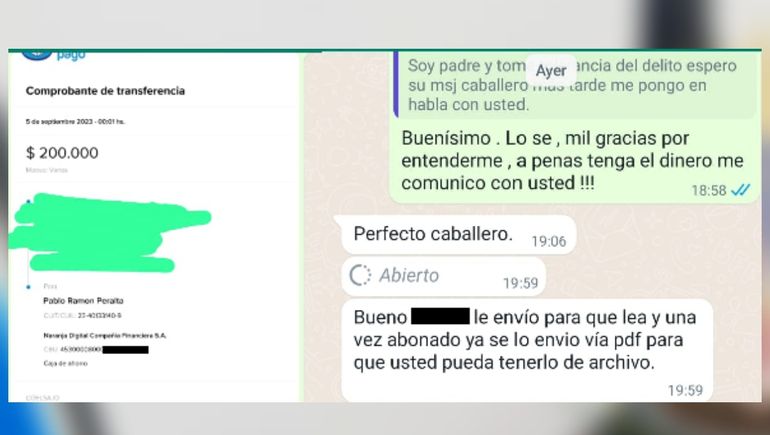 "Me dicen que me estaban acusando de pedofilia y que me andaban buscando para detenerme, que la opción era pasar 4 años y seis meses en prisión o pagar una fianza de 200 mil pesos. En ese momento no entendía nada, tenía miedo y desesperación. A la noche me llaman de vuelta y me dicen que pague la fianza o iba preso, así que fui y deposité el dinero", explicó al portal de la comarca.