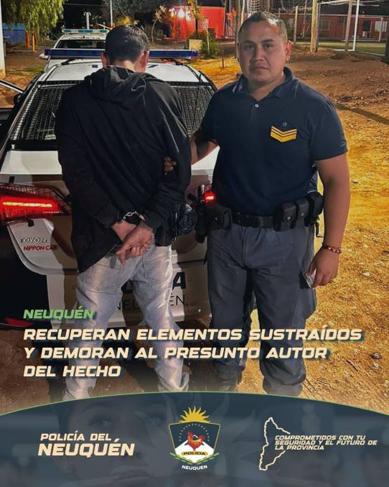 El hecho ocurrió en el cruce de las calles El Chocón y Correntoso y, el lunes por la noche, integrantes de la División Motorizada se pusieron en alerta al ver el vehículo robado. Sin demorarse, lo interceptaron y concretaron la detención de los cuatro ocupantes de distintas edades.