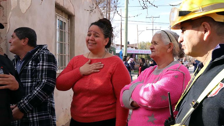 En la esquina, una ambulancia permaneció preparada en caso de alguna emergencia, así como también personal de Defensa Civil de Centenario. Con todo listo, las autoridades provinciales, municipales, judiciales y policiales cortaron la faja de clausura y presenciaron el derribo.