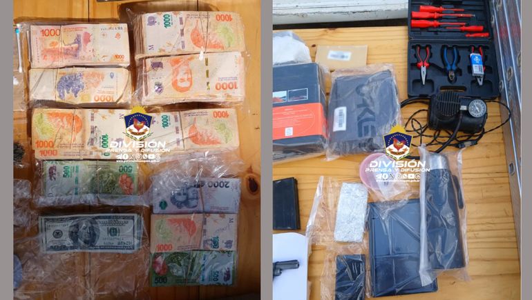 Según precisó, en total lograron secuestrar dos armas de fuego, tipo revolver, calibre 22 y calibre 44, cartuchos distintos calibres, tipo escopeta y revolver, un teléfono celular, una ballesta, un compresor de aire, un termo matero, indumentaria varias, un anafe portátil, una escalera plegable y una Tablet. Pero esto no fue todo, sino que en uno de los domicilios, donde también funcionaba una despensa, lograron dar con treinta y cinco dosis de Clorhidrato de Cocaína, veintidós dosis de Cannabis Sativa -todo listo para su comercialización-, una balanza de precisión digital en funcionamiento, 1.043.050 cincuenta pesos en billetes de diferente denominación y 568 dólares.