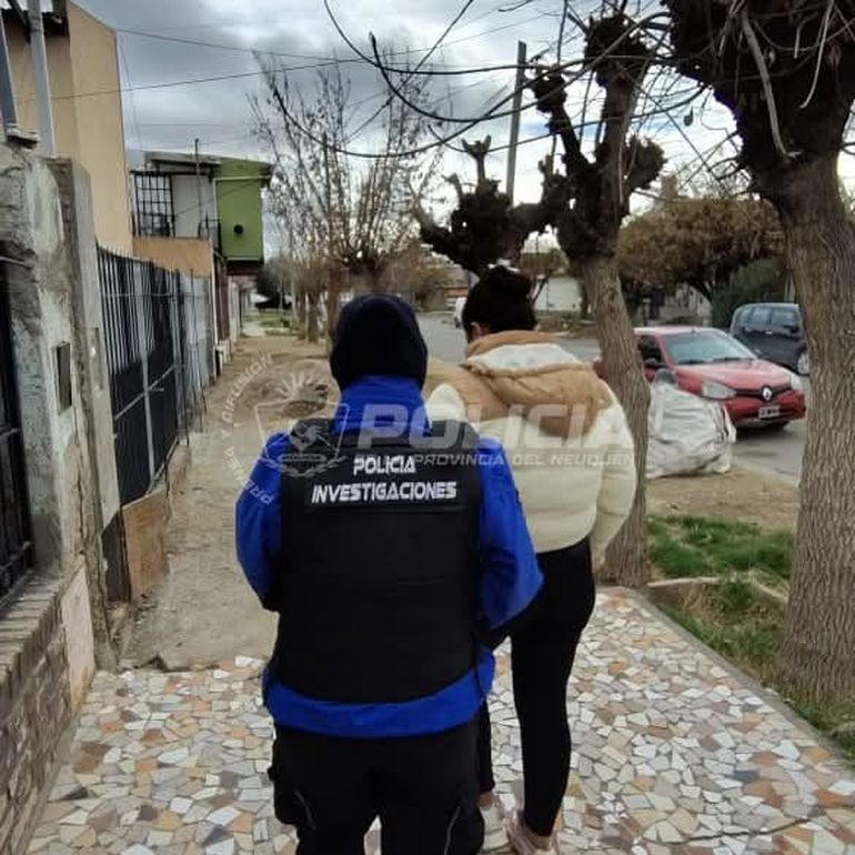 El proceso investigativo condujo a una mujer que figuraba como titular de la cuenta para transferencias. A través de averiguaciones encontraron que vivía en un domicilio de Neuquén y concretaron un allanamiento. Allí se encontraba la mujer que buscaban, y se logró proceder al secuestro de distintos celulares. La sospechosa quedó notificada de un legajo judicial por estafas, y las otras personas mayores de edad que se encontraban en la casa quedaron supeditadas a la causa.