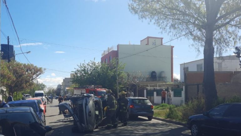 El insólito hecho, sucedió minutos después de la 15, en la intersección de calles Santa Cruz y Edelman. En este lugar, una mujer a bordo de un Peugeot 207 Compact chocó contra un auto estacionado y volcó sobre su lateral izquierdo.