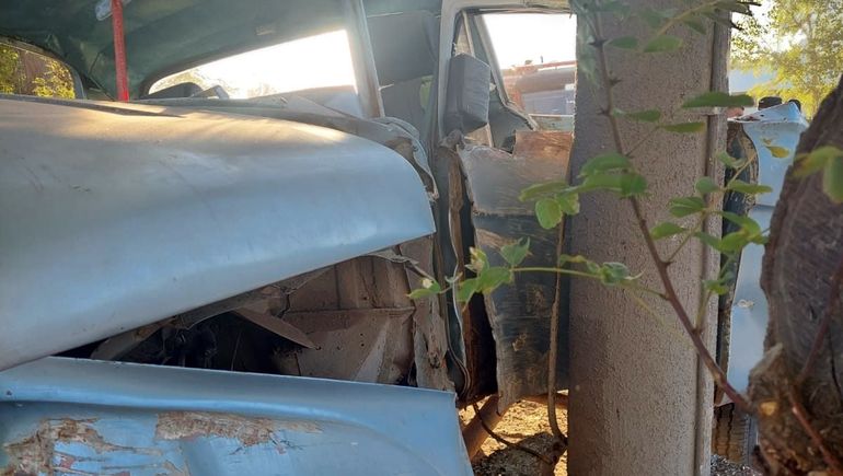 La camioneta, por su parte, quedó completamente destruida producto del fuerte choque frontal contra una columna de cemento. Tal fue la potencia del impacto, que a carrocería se desplazó hacia un costado.