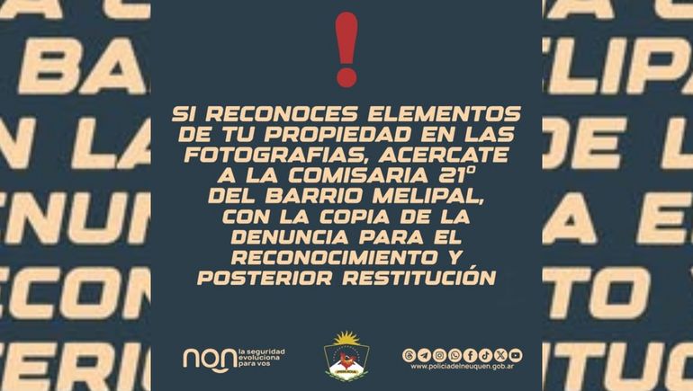 Si crees que algún elemento puede ser tuyo, acercate a la Comisaría 21 del barrio Melipal con tu denuncia de robo para reclamar la restitución.