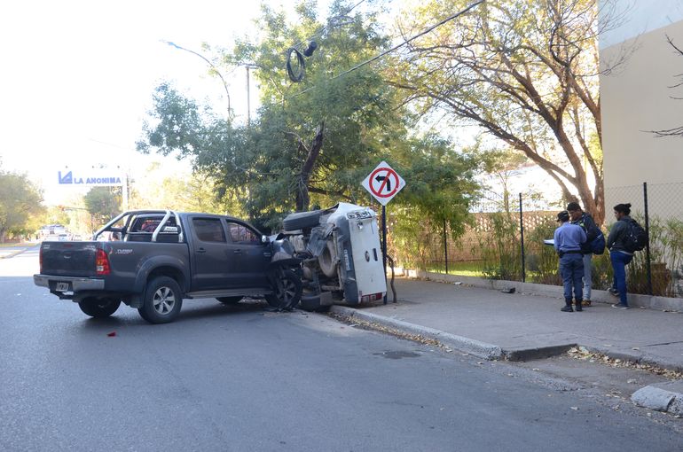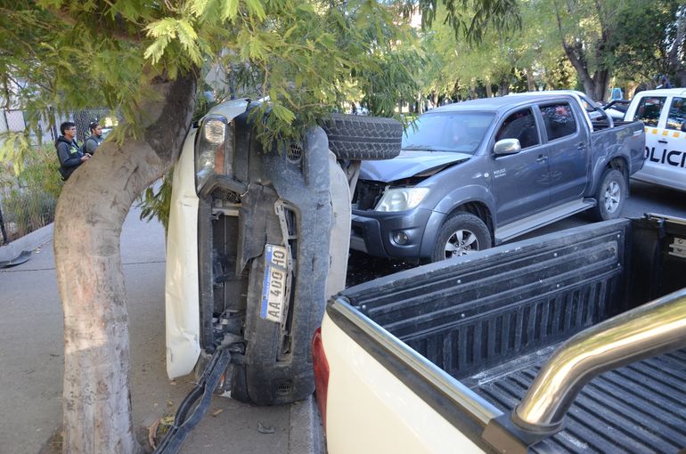 Un fuerte choque sorprendió a todos en pleno centro de la capital provincial. El conductor de una camioneta intentó esquivar otro auto y terminó por chocar contra dos vehículos estacionados, haciendo que uno terminara volcado. El test de alcoholemia arrojó negativo y se investigan las circunstancias.